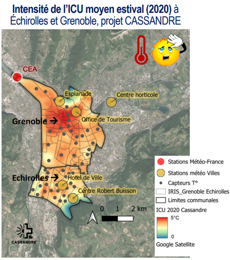 - ↑ Rome, S. et al. (2023). Étude CASSANDRE : Caractérisation et Analyse Spatiale des Situations à risque lié à la chaleur en milieu urbain. Grenoble.